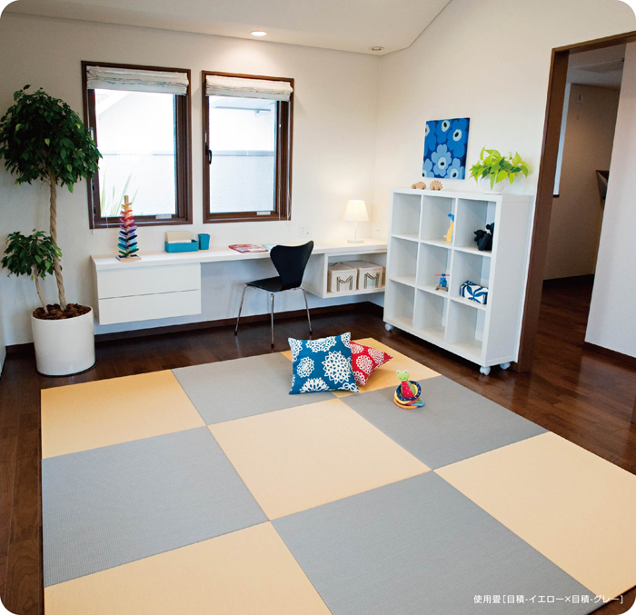 シーンに合わせて選べる豊富なラインナップ。さまざまなシーンで「快適で心地よい和空間」を実現できます。日本古来の床座の暮らしを、現代の住まいでもっと楽しんでもらいたい。優しい肌ざわりや快適性、安全性など、だれもが快適に使える畳です。(セキスイ畳 MIGUSA)